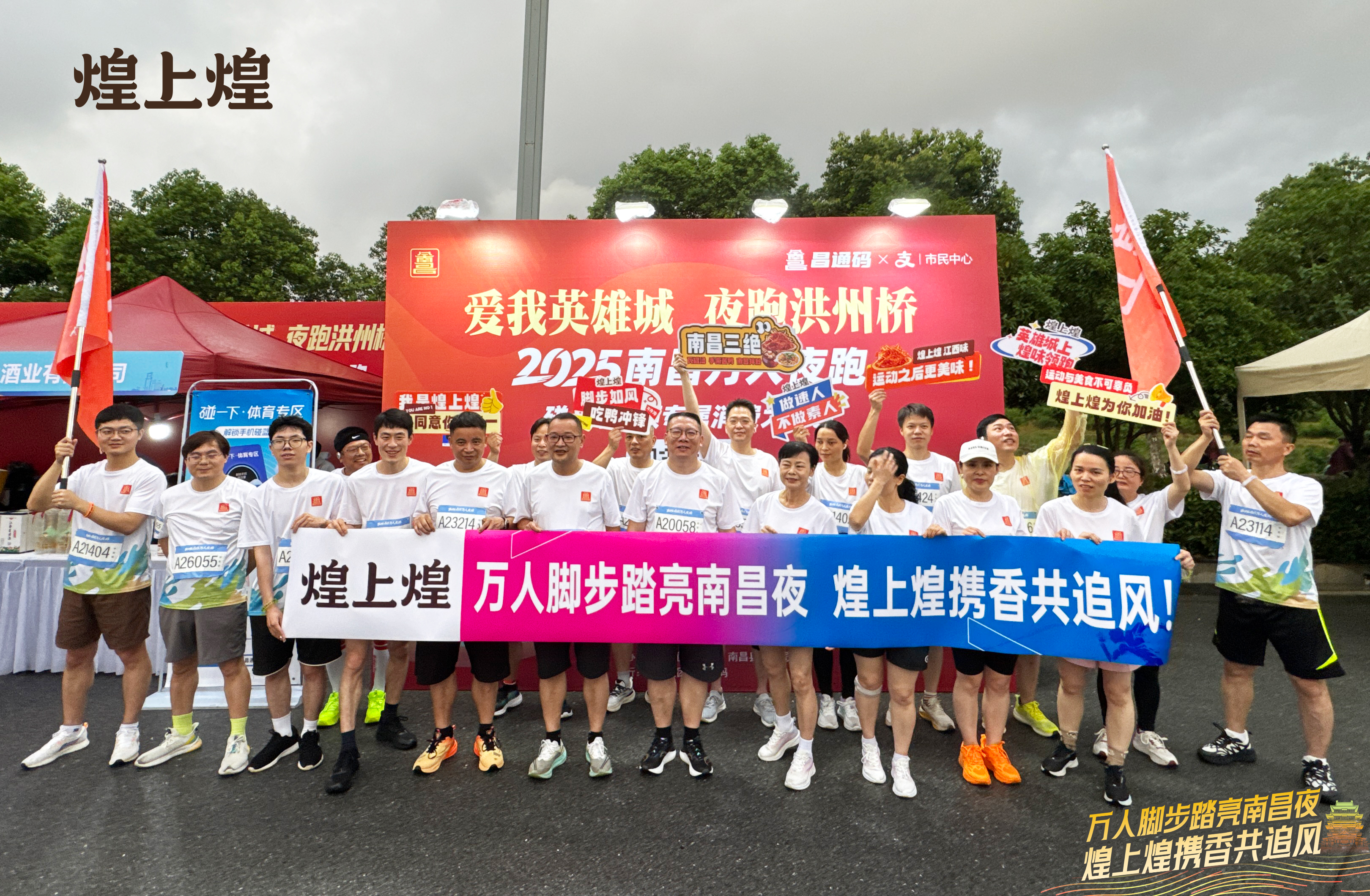 不僅如此,煌上煌還組織了30余人的“煌”家跑團,積極參加到本夜跑當中。他們手舉煌上煌旗幟,步伐矯健、精神抖擻地在賽道馳騁,吸引了眾多參賽者和觀賽者的注目,展現(xiàn)了煌上煌優(yōu)秀的品牌形象,成為賽道上一道獨特的風景線。